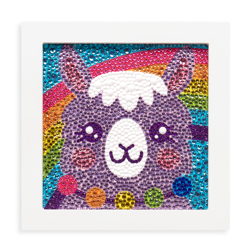 O lama zambitoare strălucind cu diamante este un decor frumos al camerei unui copil sau un cadou foarte valoros, realizat manual. Setul a fost creat pentru toți cei care iubesc munca creativă care necesită concentrare, acuratețe și precizie, ceea ce are ca rezultat decorațiuni frumoase, complicate, precum această imagine.