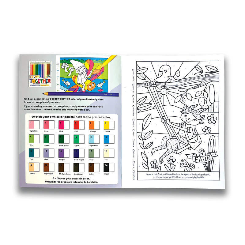 Aceasta este întâlnirea pe care copilul tău iubitor de artă a așteptat-o! Cartea de colorat după numere de la OOLY prezintă prieteni magici! Această carte conține 32 de pagini de ilustrații distractive care includ creaturi din imaginație - gândiți-vă la dinozauri zâmbitori și la fauni fericiți. Fiecare desen este numerotat cu atenție, astfel încât micuțul tău să poată face drumul spre a crea o operă de artă îndrăzneață și frumoasă!